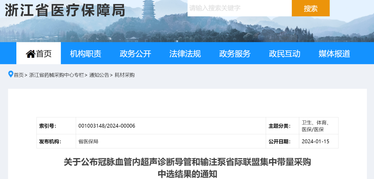 1月15日,浙江醫(yī)保局發(fā)布《關(guān)于公布冠脈血管內(nèi)超聲診斷導(dǎo)管和輸注泵省際聯(lián)盟集中帶量采購中選結(jié)果的通知》。