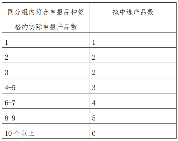 《采購文件》公布了本次中選產(chǎn)品數(shù)量確定原則,同分組內(nèi)符合申報品種資格的實際申報產(chǎn)品數(shù)為10個以上的,擬中選產(chǎn)品數(shù)為6個。