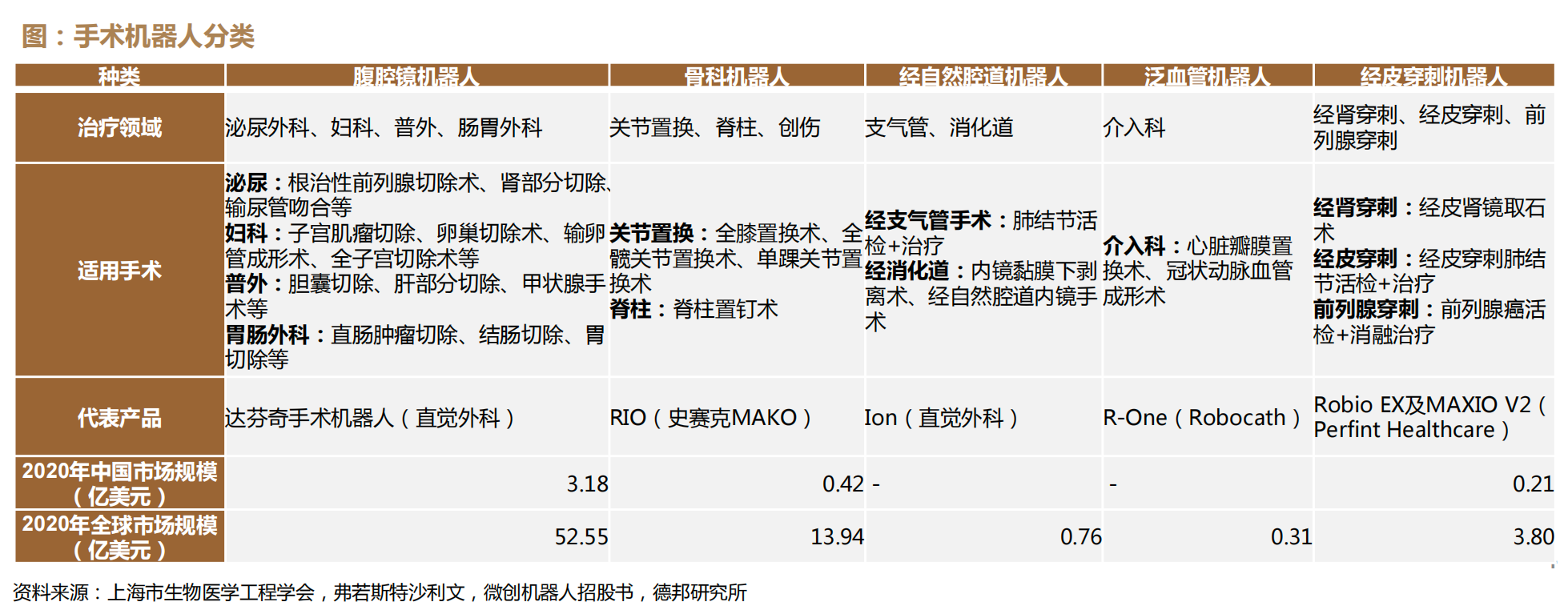 目前手術(shù)機(jī)器人主要分為腔鏡機(jī)器人、骨科機(jī)器人、經(jīng)自然腔道機(jī)器人、泛血管機(jī)器人及經(jīng)皮穿刺機(jī)器人五個(gè)賽道,其中腔鏡機(jī)器人為目前手術(shù)機(jī)器人最主流、商業(yè)化最成熟的賽道。
