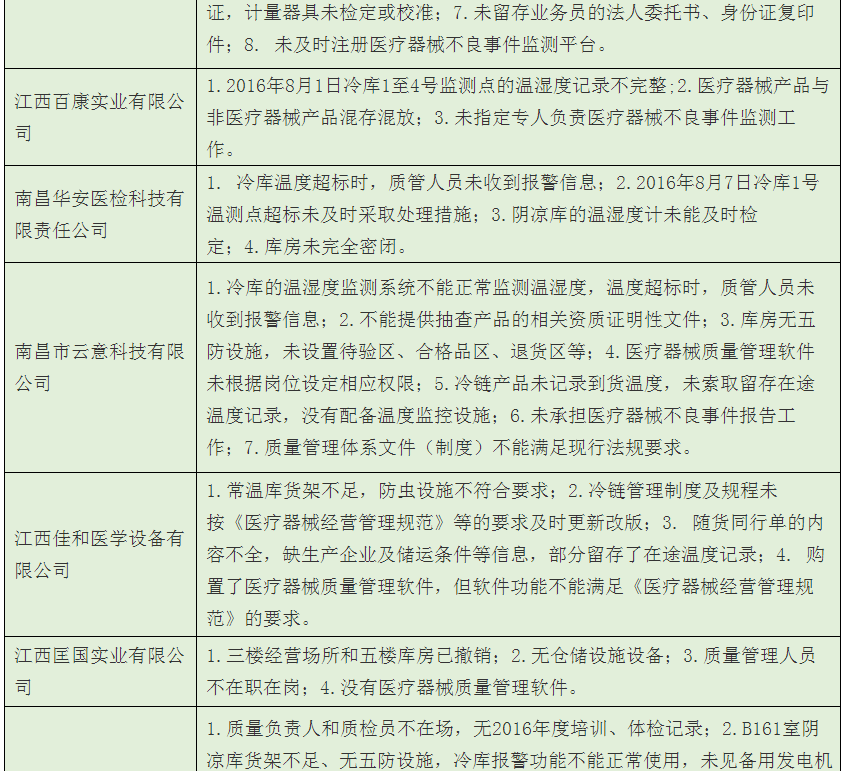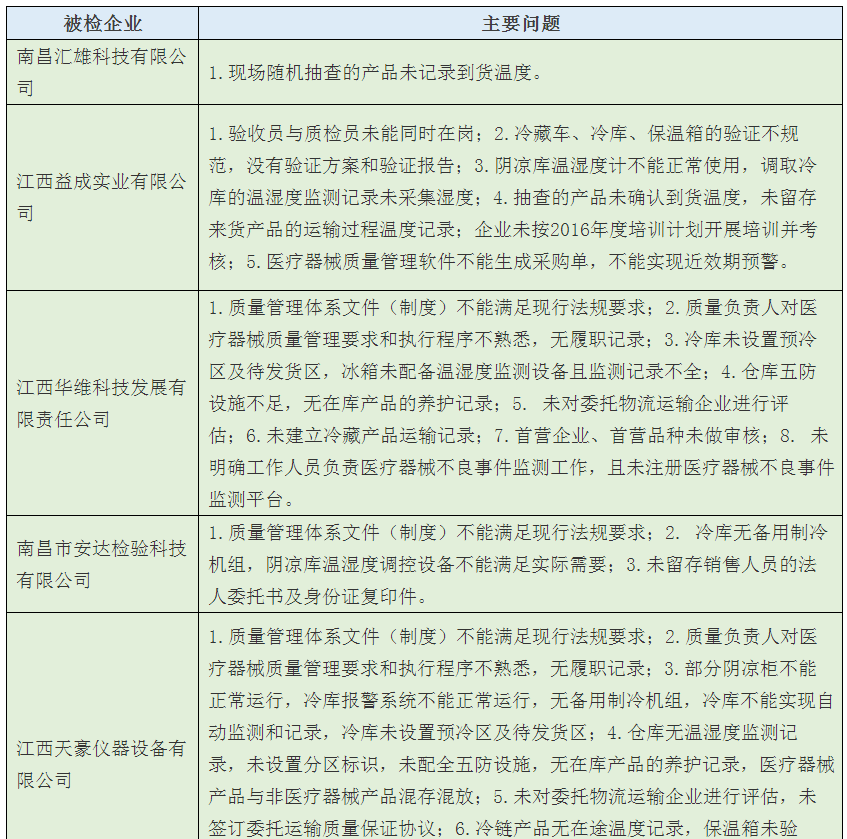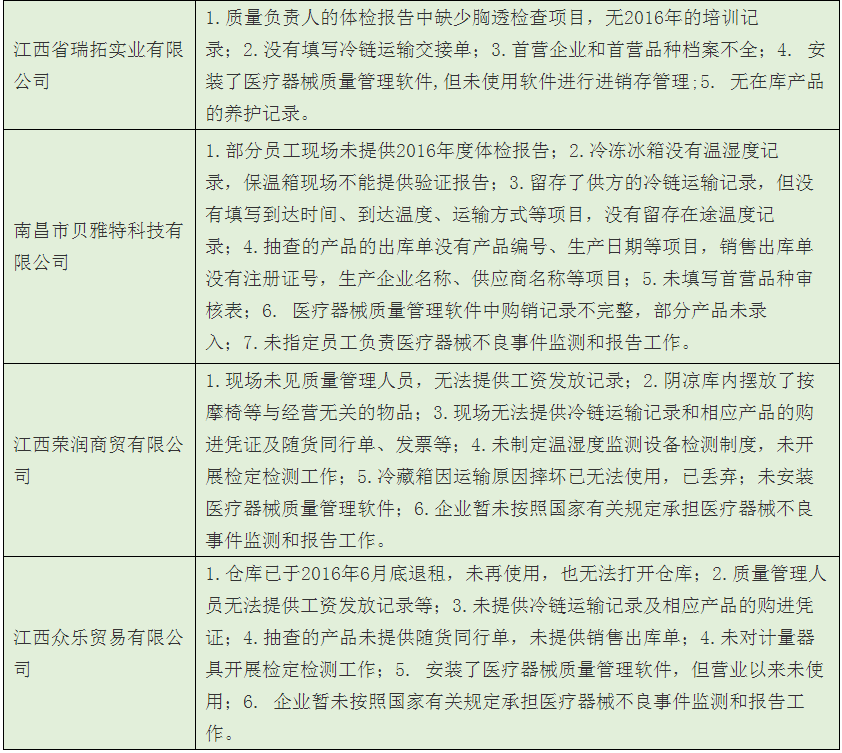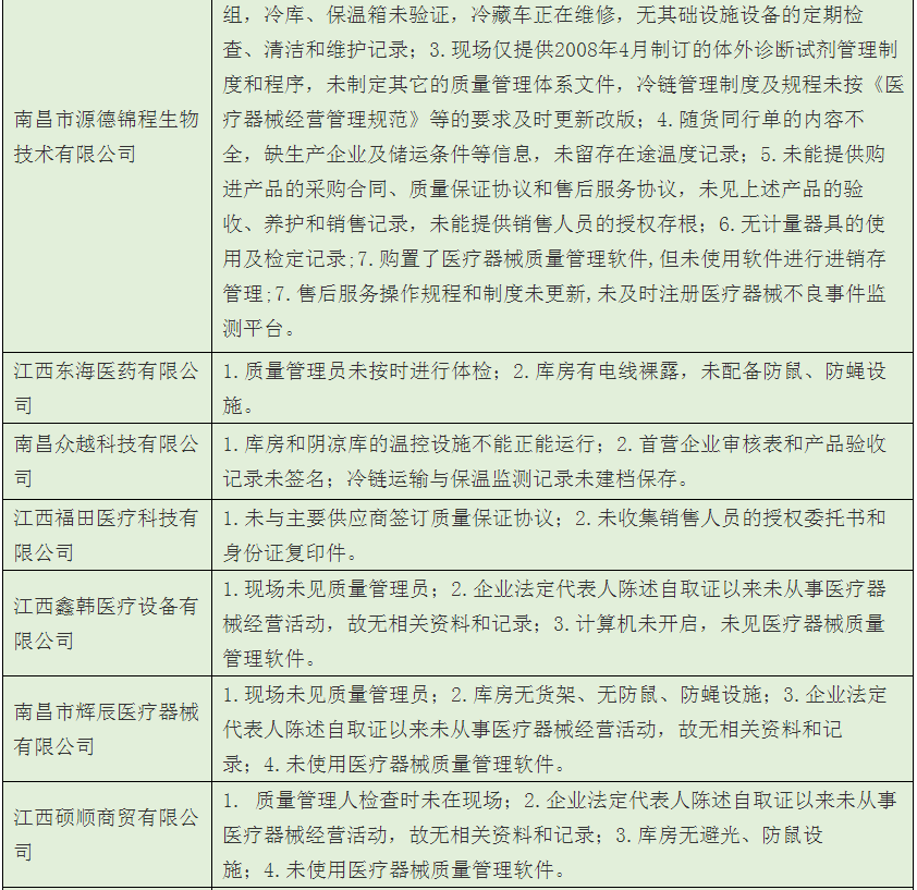 歸結(jié)起來(lái),南昌市藥監(jiān)局經(jīng)過(guò)飛檢后發(fā)現(xiàn),該市械商主要存在以下6方面的不依法經(jīng)營(yíng)或者不符合醫(yī)械GSP要求問(wèn)題: