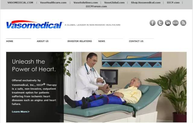 Vasomedical公司是體外反搏 (ECP) 治療的黃金標(biāo)準(zhǔn)—EECP® Therapy 系統(tǒng)的擁有者,它是一家多元化的醫(yī)療科技公司,專注于醫(yī)療器材的設(shè)計(jì)、制造于銷售。