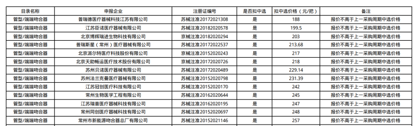 其中,管型/端端吻合器最低擬中選價(jià)格188元,最高擬中選價(jià)格604元;痔吻合器最低擬中選價(jià)格183元,最高擬中選價(jià)格364.5元。