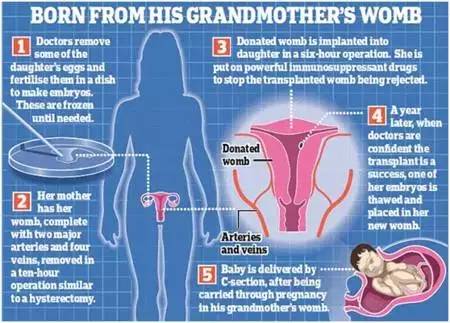4.大約1年后,如果醫(yī)生認(rèn)為移植子宮存活和功能良好,則會(huì)將一個(gè)預(yù)先冷凍的胚胎解凍植入新移植子宮內(nèi)。5如果一切順利,胎兒發(fā)育生長(zhǎng)良好,胎兒將在孕育6個(gè)月成熟后的某個(gè)階段經(jīng)過剖腹產(chǎn)娩出。