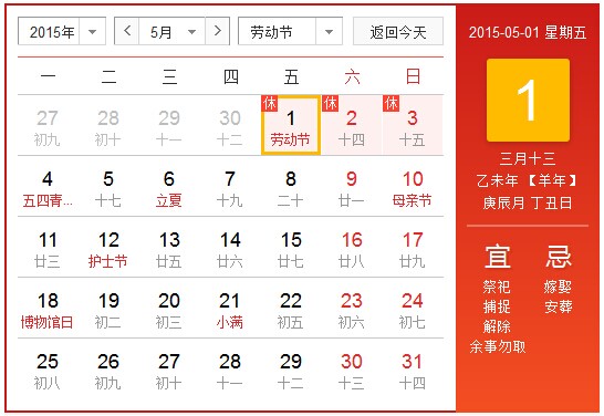 2015年北京華康普美科技有限公司,“五一勞動(dòng)節(jié)”假期為:5月1日(星期五)至5月3日(星期日)共放假3天,5月4日(星期一)正常上班。