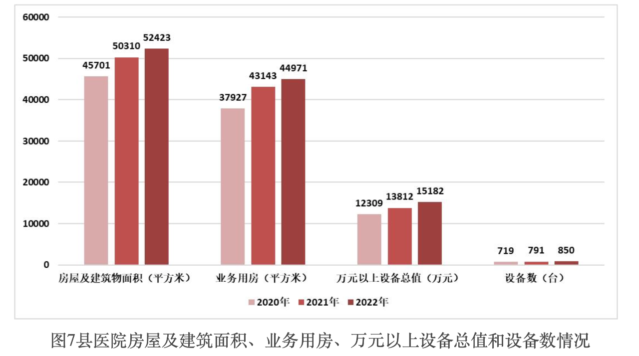 根據國家衛(wèi)健委《關于通報2021-2022年度縣醫(yī)院醫(yī)療服務能力評估情況的函》,2022年度,縣醫(yī)院萬元以上設備總值平均約15182萬元,較2020年度增長23.34%;平均擁有萬元以上設備數(shù)約為850臺,較2020年度增加131臺。符合全國縣醫(yī)院基本標準要求的專科設備配置率由2020年度的58.70%提高到65.15%。