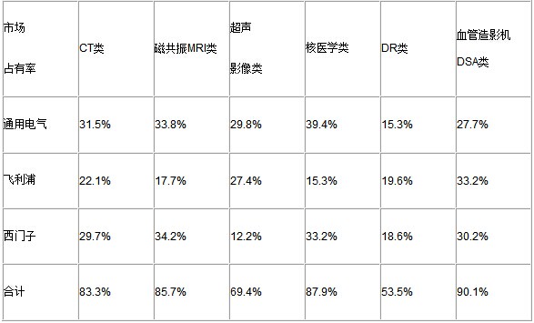 據(jù)數(shù)據(jù)顯示,上年度大型設(shè)備試產(chǎn)占有率方面,GPS三甲代表性外資醫(yī)械企業(yè)的市場占有率依然處于絕對的優(yōu)勢。