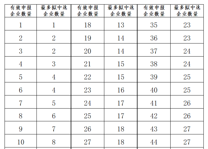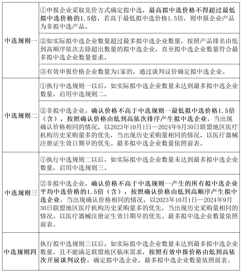 擬中選規(guī)則方面,按有效申報價格由低到高的順序確定排名,最多擬中選企業(yè)數(shù)量詳見下表。