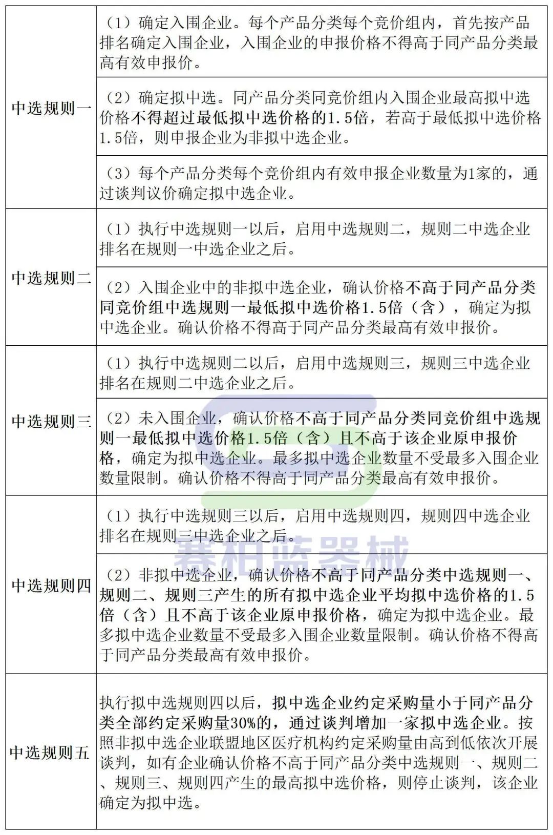 以下為外周血管介入導(dǎo)引通路中選規(guī)則(不同品種略有差異,具體見正式采購文件):