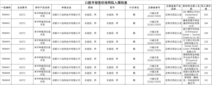 值得關(guān)注的是,根據(jù)3月1日國家醫(yī)保局辦公室發(fā)布的《關(guān)于做好2023年醫(yī)藥集中采購和價格管理工作的通知》,在牙冠領(lǐng)域,“四川醫(yī)保局率先開展牙冠競價掛網(wǎng),其他省份及時跟進聯(lián)動四川的牙冠掛網(wǎng)價”。