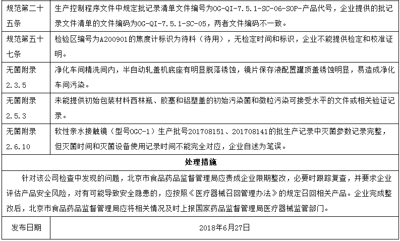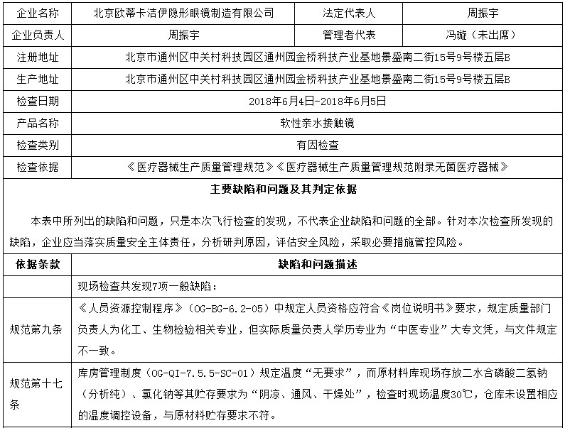 對(duì)北京歐蒂卡潔伊隱形眼鏡制造有限公司飛行檢查通報(bào)