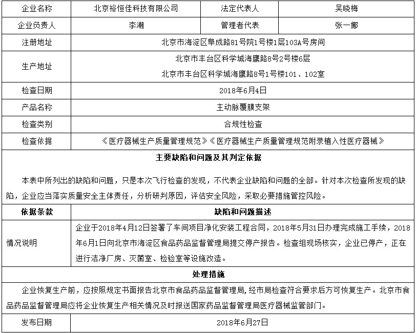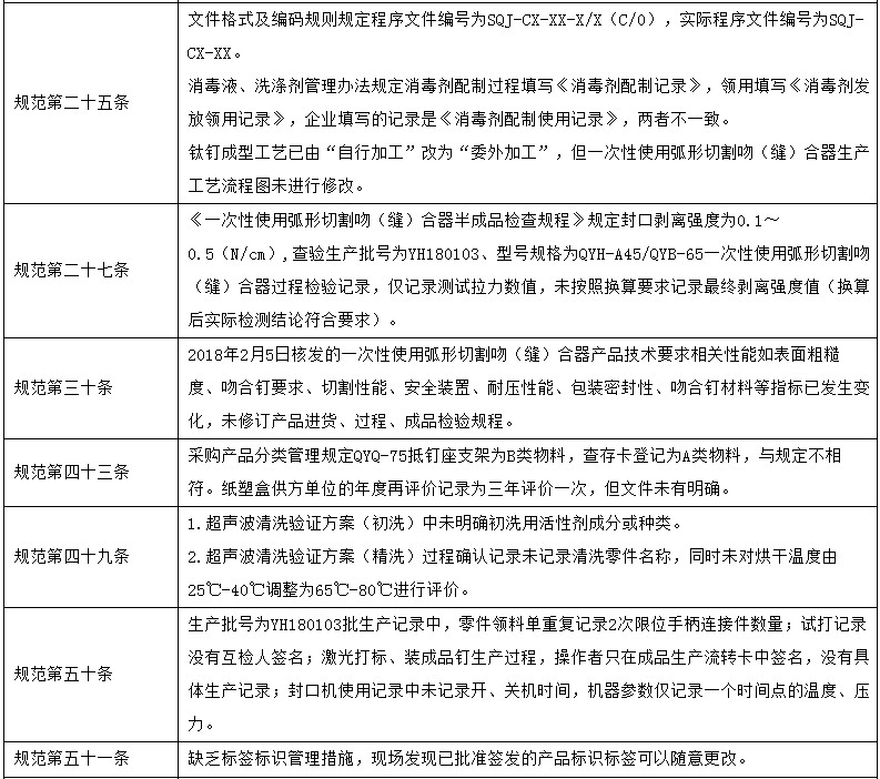 通報(bào)顯示,6家企業(yè)分別位于江蘇、湖北、河北、北京等省市,其中3家處于停產(chǎn)狀態(tài),另外3家發(fā)現(xiàn)多處一般缺陷,被要求限期整改,這其中包括南京微創(chuàng)。