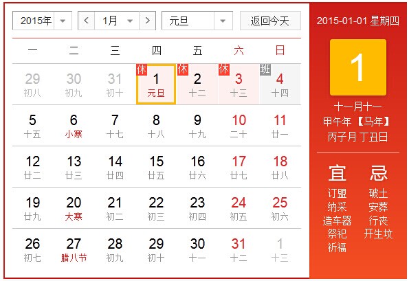 2015年北京華康普美科技有限公司,“元旦節(jié)”假期為:1月1日(星期四)至1月3日(星期六)共放假3天,1月4日(星期日)正常上班。