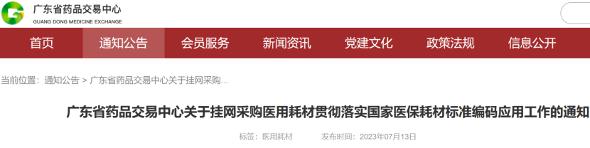 7月13日,廣東省藥品交易中心發(fā)布《關(guān)于掛網(wǎng)采購醫(yī)用耗材貫徹落實國家醫(yī)保耗材標準編碼應(yīng)用工作的通知》(以下簡稱《通知》)。