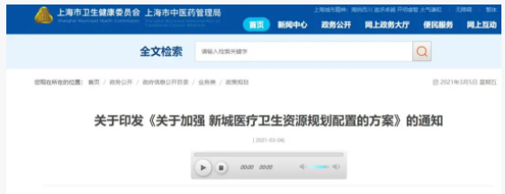 醫(yī)藥網(wǎng)3月9日訊 3月4日,上海市衛(wèi)健委發(fā)布了《關(guān)于加強(qiáng) 新城醫(yī)療衛(wèi)生資源規(guī)劃配置的方案》的通知(以下簡稱“通知”)。