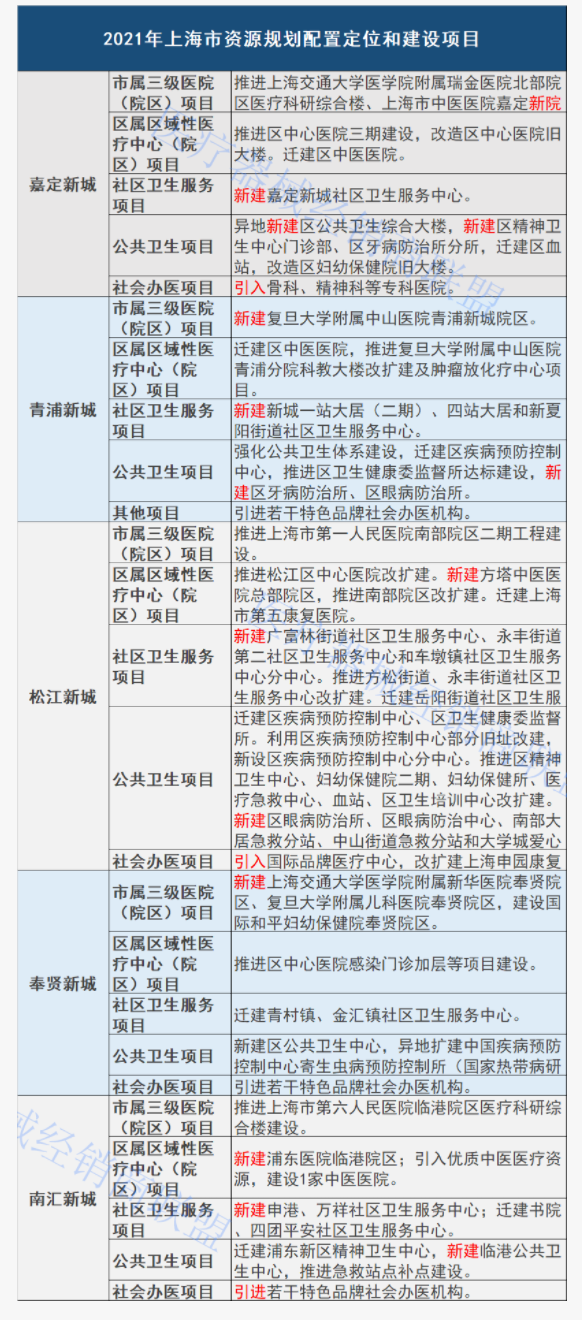 明確到2025年,完善5個(gè)新城優(yōu)質(zhì)醫(yī)療資源布局,包括嘉定新城、青浦新城、松江新城、奉賢新城、南匯新城。