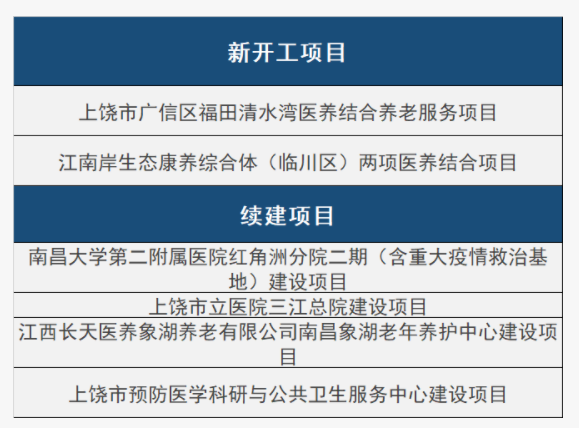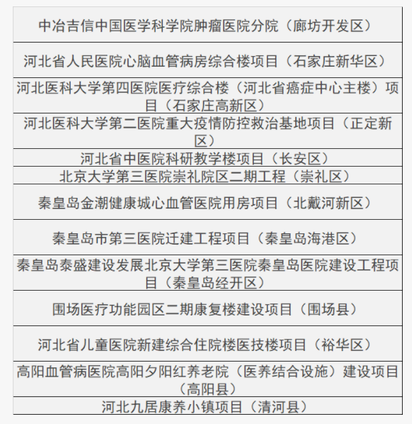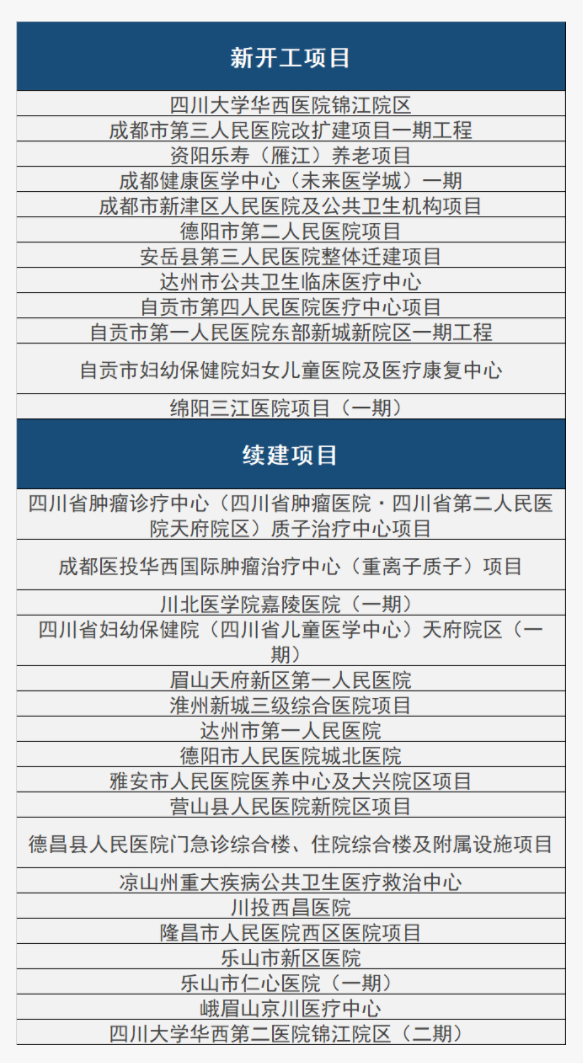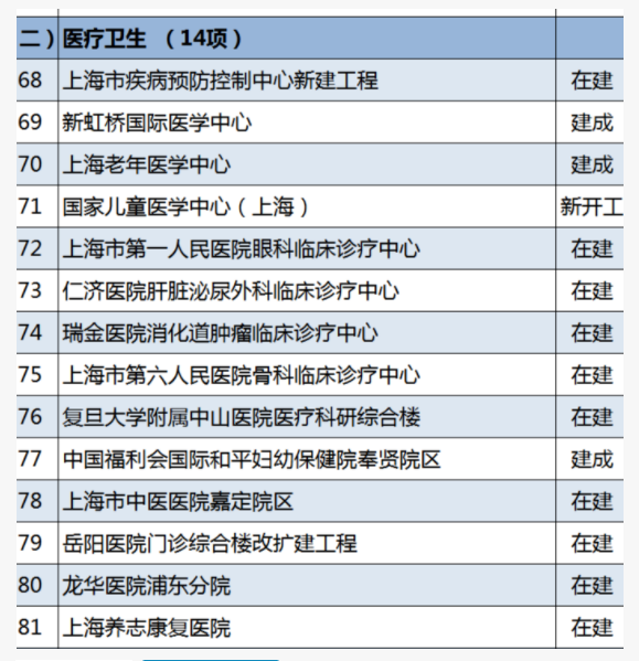其中,新開工項(xiàng)目中含醫(yī)療衛(wèi)生項(xiàng)目12項(xiàng):