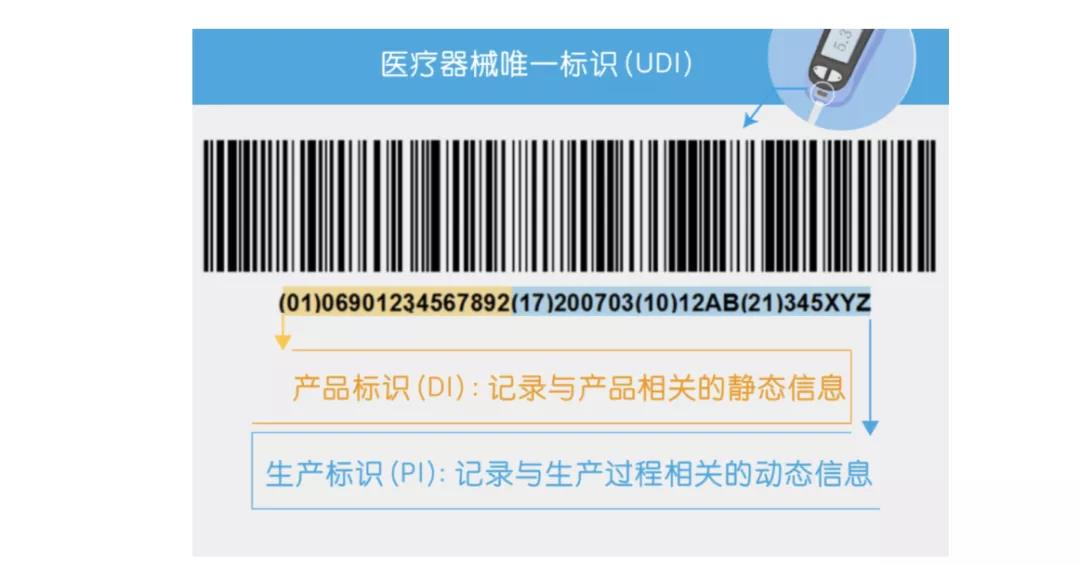其中,器械標識DI屬于靜態(tài)信息,它是醫(yī)療器械產(chǎn)品在供應(yīng)鏈中的身份標識,可作為進入數(shù)據(jù)庫查詢該產(chǎn)品追溯基本信息的“關(guān)鍵字”。 而生產(chǎn)標識PI屬于動態(tài)信息,它包括醫(yī)療器械產(chǎn)品的序列號、批號、生產(chǎn)日期和有效期等,是醫(yī)療器械產(chǎn)品的動態(tài)附加信息,它與DI聯(lián)合使用,才能指向特定的醫(yī)療器械產(chǎn)品。