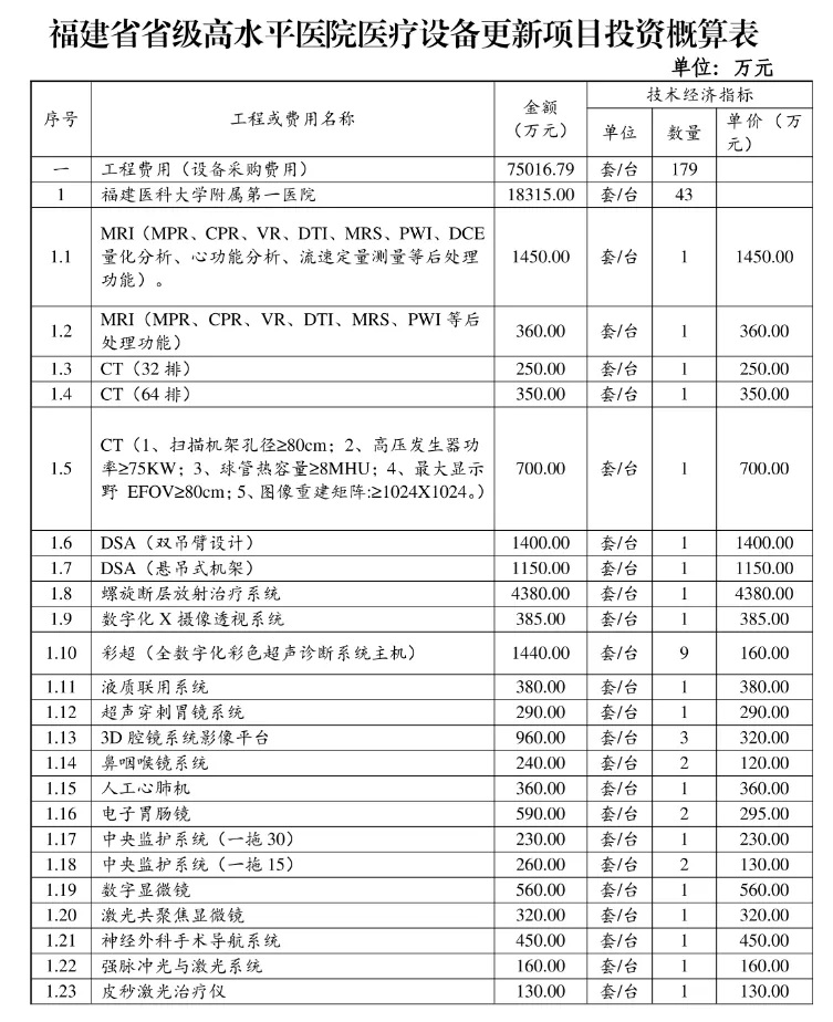 7月16日,福建衛(wèi)健委發(fā)布《關(guān)于征集擬采購醫(yī)用設(shè)備相關(guān)資料的通知》。其中顯示,福建計劃購置更新一批醫(yī)用設(shè)備,為確保采購設(shè)備的科學(xué)性、合理性及經(jīng)濟性,福建省衛(wèi)健委CT、MR集采專班現(xiàn)面向各相關(guān)供應(yīng)商征集擬采購醫(yī)用設(shè)備的相關(guān)資料。