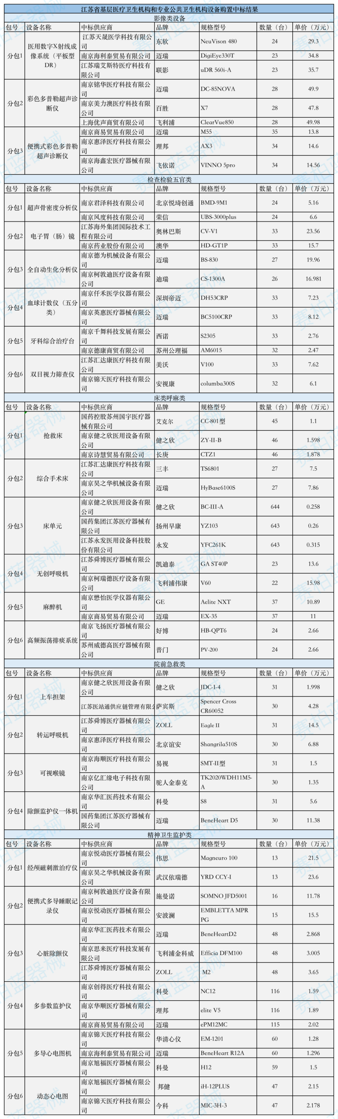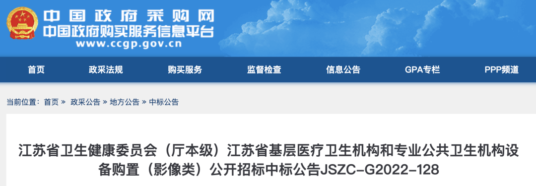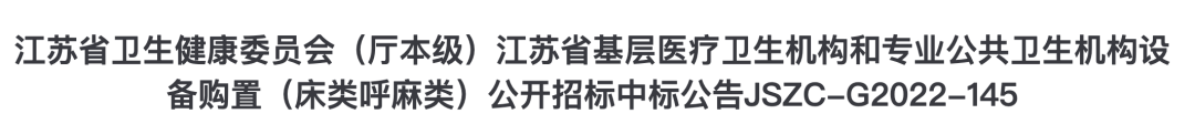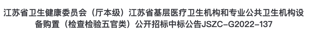 近日,江蘇省衛(wèi)生健康委員會(廳本級)江蘇省基層醫(yī)療衛(wèi)生機構(gòu)和專業(yè)公共衛(wèi)生機構(gòu)設(shè)備購置項目中標結(jié)果公布。