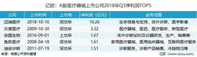 反過來看,Q3凈利潤排名前五的企業(yè)中,邁瑞醫(yī)療依舊領(lǐng)先同行,獨占10億元以上梯隊。其次分別為樂普醫(yī)療、安圖生物、魚躍醫(yī)療、迪安診斷。