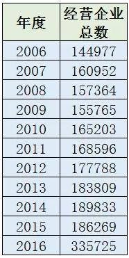 在2015年之前,藥監(jiān)歷年年報數據,關于醫(yī)療器械經營企業(yè)一直都是只有持證企業(yè)總數這一項內容的。2015年度,開始分別給出了經營二類和三類醫(yī)械產品的企業(yè)數據。2016年度,則進一步細化為僅經營二類、僅經營三類、同時經營二三類這三項去各自統(tǒng)計。