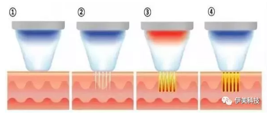 深度精準可調,靶向治療:通過微針深入皮膚,真皮層直接發(fā)射射頻能量,同時可根據(jù)不同程度的適應調節(jié)微針刺入的深度和射頻能量大小,療效加倍。