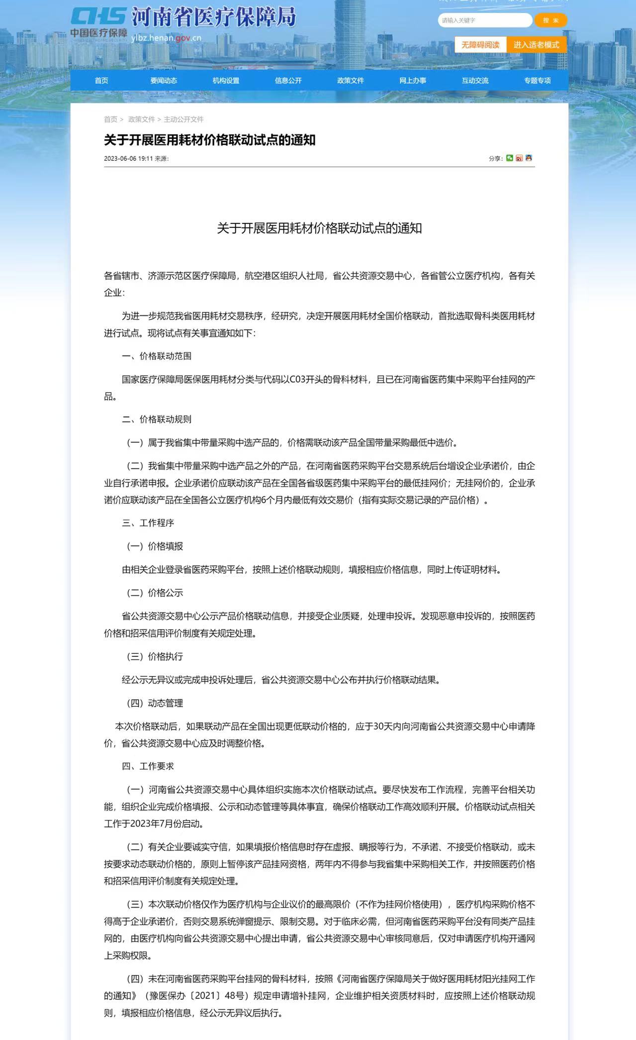 根據(jù)《通知》,此次價格聯(lián)動試點相關工作于2023年7月份啟動,價格聯(lián)動范圍包括國家醫(yī)療保障局醫(yī)保醫(yī)用耗材分類與代碼以C03開頭的骨科材料,且已在河南省醫(yī)藥集中采購平臺掛網(wǎng)的產(chǎn)品。