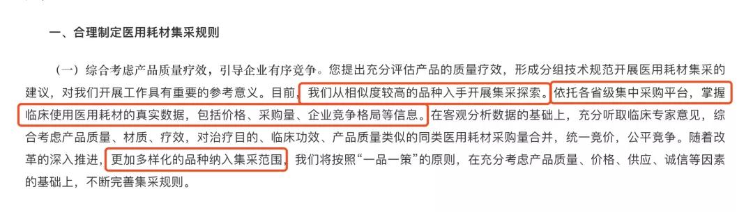 對于“推進醫(yī)用耗材聯(lián)盟帶量采購工作”的提案,國家醫(yī)保局同國家衛(wèi)生健康委、國家藥監(jiān)局研究后,決策如下: