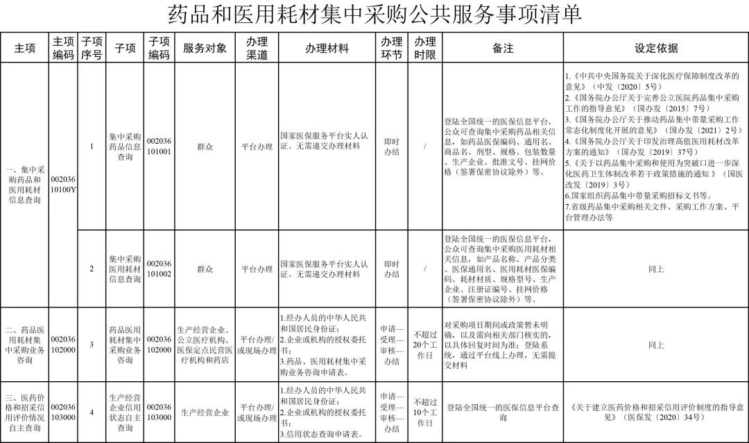 附:藥品和醫(yī)用耗材集中采購(gòu)公共服務(wù)事項(xiàng)清單