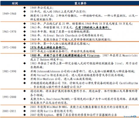 前文所述,醫(yī)療器械企業(yè)的成長(zhǎng)歷史就是一部不斷并購(gòu)的歷史。下面我們通過(guò)國(guó)外和國(guó)內(nèi)兩家最具代表性的企業(yè):美敦力和邁瑞醫(yī)療的發(fā)展過(guò)程,一探醫(yī)療器械行業(yè)的并購(gòu)成長(zhǎng)路線。