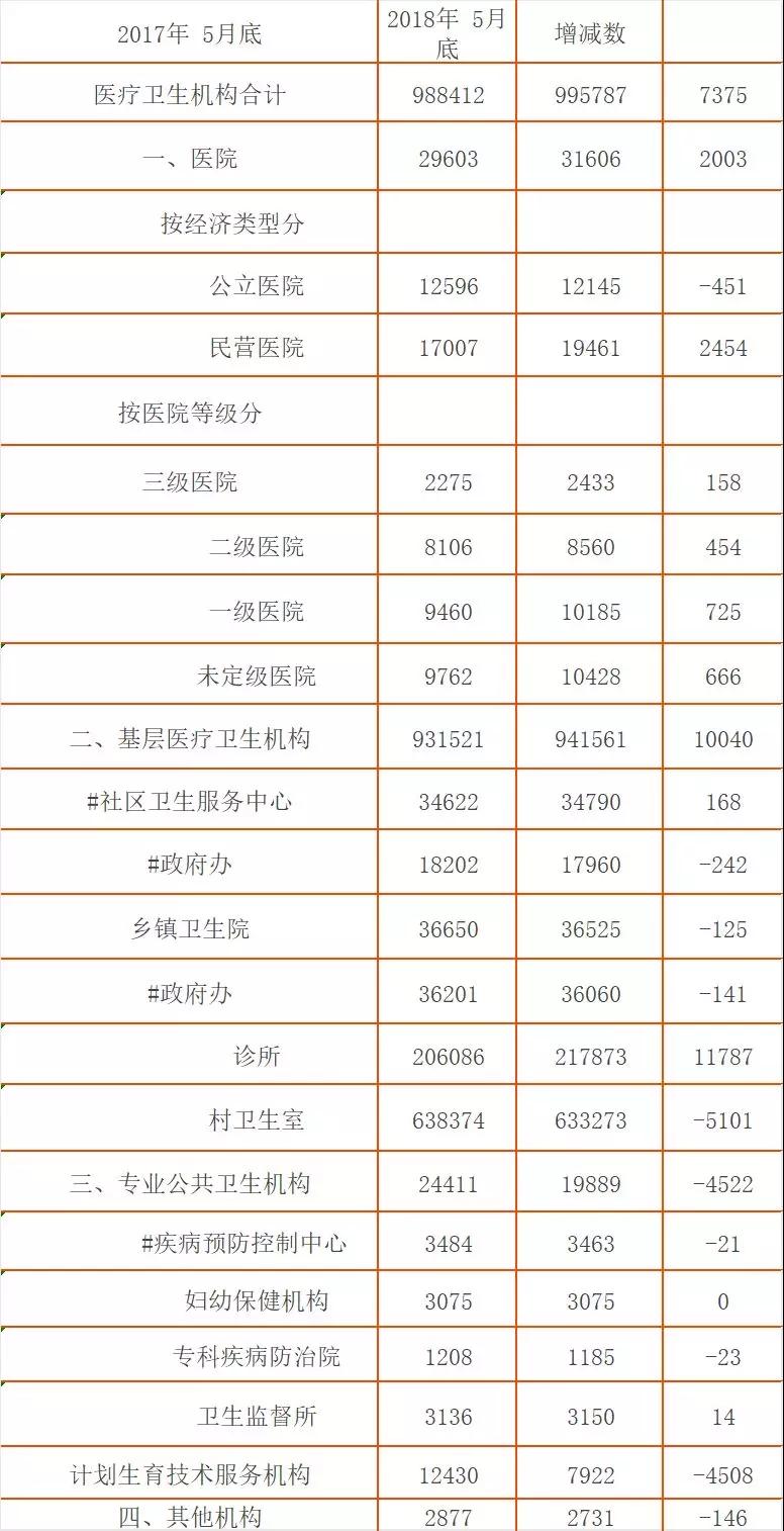 據(jù)衛(wèi)健委數(shù)據(jù),截至2018年5月底,醫(yī)院3.2萬個,其中:公立醫(yī)院12145個,民營醫(yī)院19461個。與2017年5月底比較,公立醫(yī)院減少451個,民營醫(yī)院增加2454個。