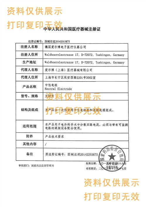 注冊(cè)證號(hào):國(guó)械注進(jìn)20142015875