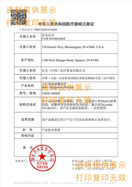 美國庫克Bakri 子宮填塞球囊導(dǎo)管J-SOS-100500