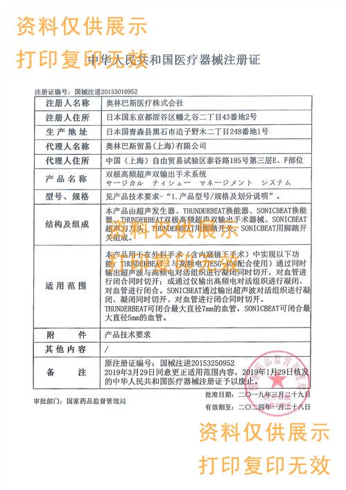 本產(chǎn)品用于在外科手術(shù)(含內(nèi)鏡下手術(shù))中實(shí)現(xiàn)以下功能:THUNDERBEAT(與高頻電刀ESG-400配合使用)通過(guò)同時(shí)輸出超聲波與高頻電對(duì)活組織進(jìn)行凝閉同時(shí)切開(kāi)、對(duì)血管進(jìn)行閉合同時(shí)切開(kāi);或通過(guò)僅輸出高頻電對(duì)活組織進(jìn)行凝閉、對(duì)血管進(jìn)行閉合。SONICBEAT通過(guò)輸出超聲波對(duì)活組織進(jìn)行凝閉、凝閉同時(shí)切開(kāi)、對(duì)血管進(jìn)行閉合同時(shí)切開(kāi)。THUNDERBEAT可閉合最大直徑7mm的血管,SONICBEAT可閉合最大直徑5mm的血管。