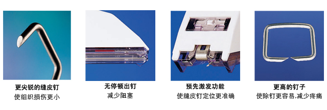 每一個威克皮膚縫合器采用35個標(biāo)準(zhǔn)或加寬型醫(yī)用級不銹鋼釘,使得此皮膚縫合器被廣泛應(yīng)用于各類外科手術(shù)中。
